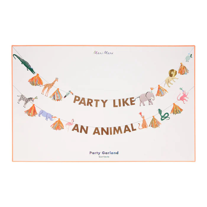 Si tienes una fiesta con temática de safari, ¡nuestra brillante guirnalda es imprescindible! La guirnalda grande de Animales de Safari combina fabulosamente un divertido mensaje: "Fiesta como un animal" en llamativas letras doradas, doce banderines de animales salvajes y ocho llamativas borlas. Bellamente ilustrada y elaborada, viene preensartada en dos tiras de cordel azul. Quedará espectacular en el salón de fiestas.