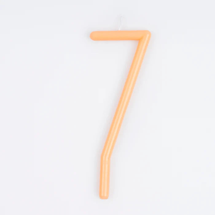 - Vela de cera con forma de número, de color suave.